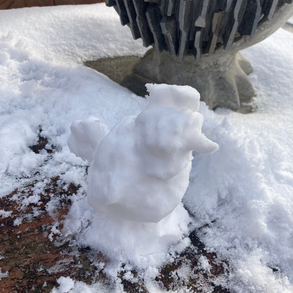 Without saying where I am, we’ve had a bit of snow. And because I am an eternal child, I decided to have fun with it, then blog about it. After all, it’s The Year of Chaotic Creation! Why not make a tiny snowman decorated with some pebble dash that fell off the house and a couple of tiny leaves?